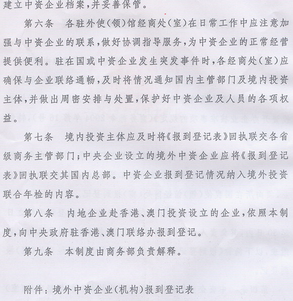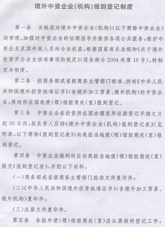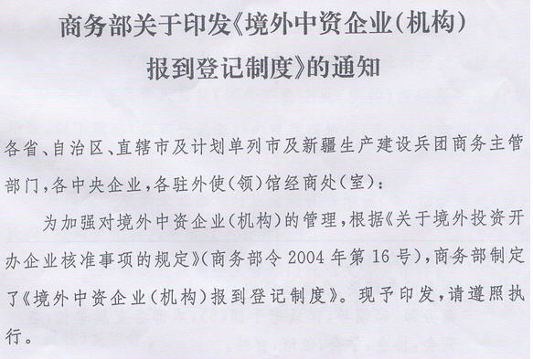 商务部关于印发《境外中资企业(机构)报到登记制度》的通知
